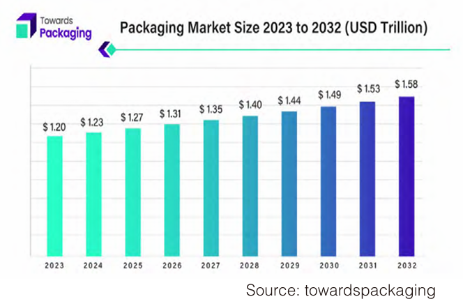 Driven by the global e-commerce market, the packaging market is projected to grow from USD 1.20 trillion in 2023 to USD 1.58 trillion in 2032, with a compound annual growth rate of 3.1%. In 2021, the Ministry of Environment (Taiwan) reported annual consumption of 220 million sets of single use e-commerce packaging in Taiwan, with demand expected to double by 2030. Over the past decade, the packaging industry has shifted toward digitalization and green innovation. Companies must implement sustainable packaging strategies to reduce environmental impact and meet market demand.