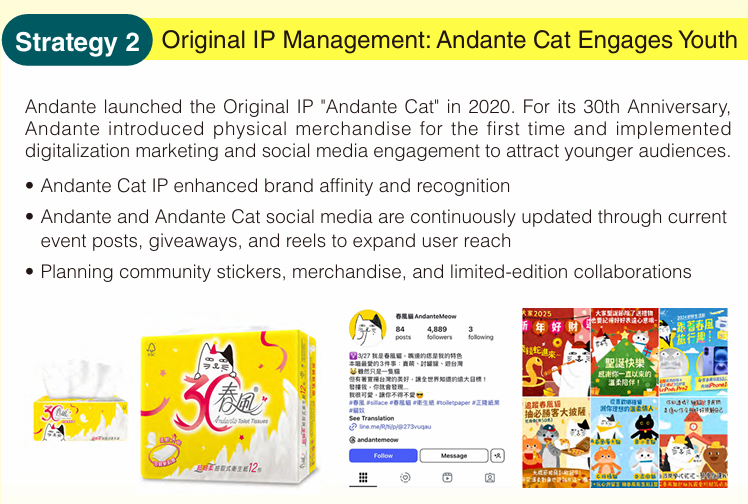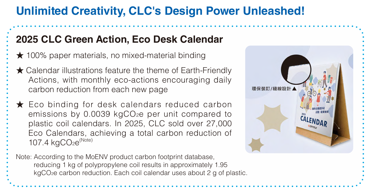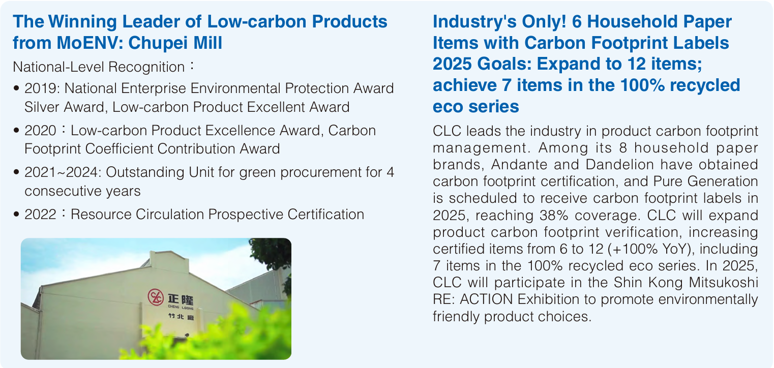 In 2024, CLC launched the Dandelion Eco Convenient Pack Toilet Tissue and the Locally Extracter Personal Care Series by Andante to advance low-carbon, plastic-reduced, and nature-based solutions. In 2025, for the 30th anniversary of the Andante brand, CLC will introduce box facial tissues made entirely of paper without lamination. These initiatives promote daily sustainable practices and reinforce CLC's long-term commitment to sustainability.