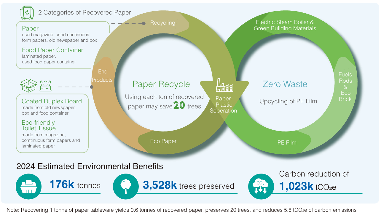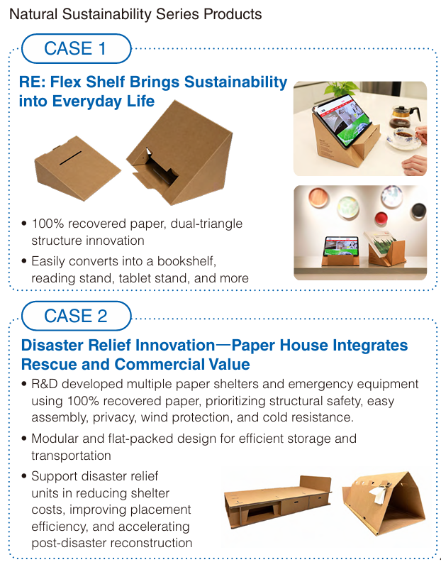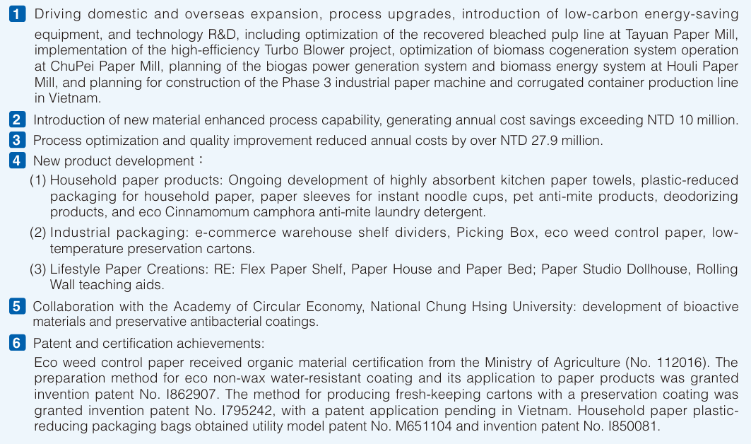 ● Strategy: Adhering to the 3R principles—Reduce, Reuse, Recycling—to achieve full resource recycling, advance R&D of diverse low-carbon products and services, and generate sustainable value from each sheet of paper.