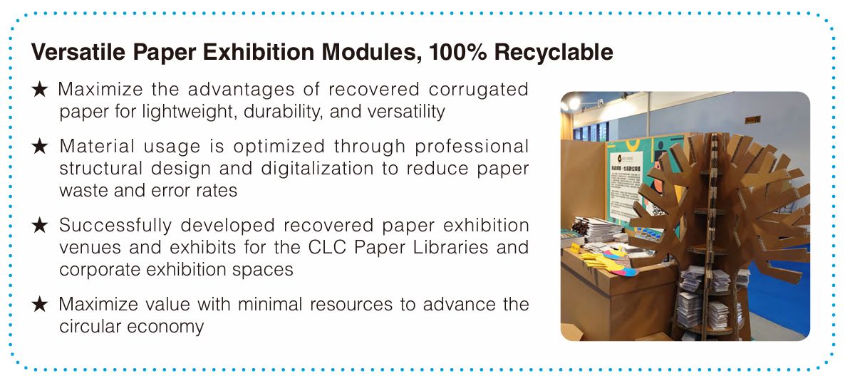 Since 2013, CLC has launched the Paper Studio brand, developing children's furniture and cat toys made from 100% recovered paper. In 2024, Paper Studio introduced fully paper-based chairs, the Paper Studio Dollhouse, and the Paper Studio Rolling Wall as low-carbon innovation products. The Dollhouse serves as both toy storage and bookshelf, and its all-paper design enables complete recycling and reuse when no longer needed. The Rolling Wall provides cognitive learning functions, allowing children to recognize images and text by flipping panels.