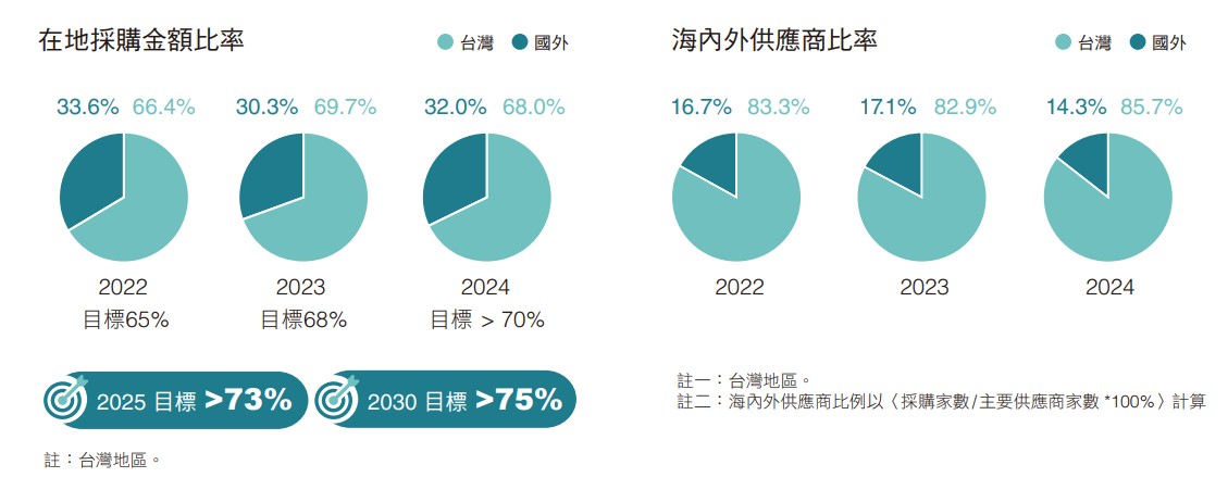 強化供應鏈韌性與在地採購策略:在地供應商家數占比達85.7%