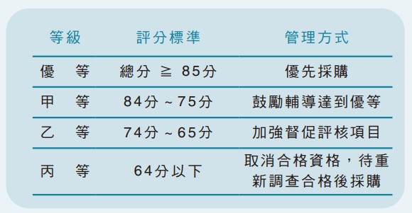 為構建永續供應鏈生態系,正隆每年依據ISO採購程序進行供應商定期評核,由採購、技術及相關業務單位跨部門協作,對重要交易供應商進行綜合評估,並將評核結果分為優、甲、乙、丙四個等級,據此擬定並推動相應的管理策略。