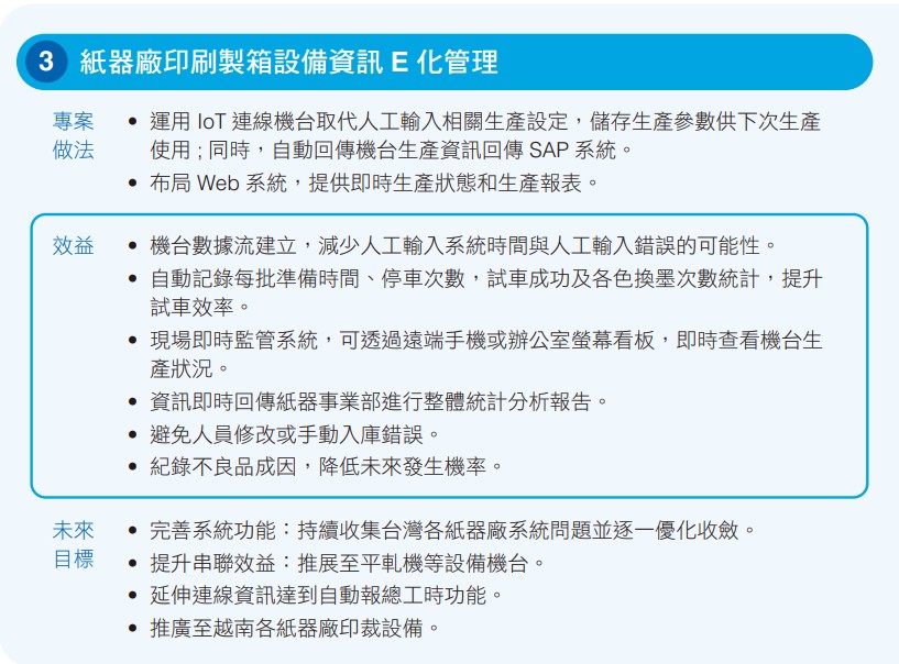 面對AI技術的快速發展,正隆奠基於完善的自動化、E化與智能數據基礎,於2024年正式宣告步入AI應用元年。透過舉辦AI工作坊與跨團隊協作,深化AI技術於營運管理與生產流程的應用。2024年成功導入4項智能專案,包括自建企業用GPT系統提升行政管理與人資服務效率、紙器廠RFID棧板管理、台灣紙器廠全面導入印刷製箱設備E化管理以及規劃越南平陽造紙廠PI系統。自2019年推動智紙4.0以來,正隆已成功導入29項智能專案,持續推動製程數位化與智慧優化。未來,正隆將進一步擴大智紙4.0的應用範圍,包含推動海外越南平陽造紙機以及汽電共生系統全面導入AI智慧製造,以提升能源利用與減碳效益,同時結合海內外廠區的數位巡檢系統,實現線上智慧製造與線下數位巡檢的無縫整合。透過即時數據收集與分析,優化生產流程、提升設備運行效率,進而強化品質管理與減少能耗,實現智慧造紙新革命。因應數位化進程,本公司亦持續升級ISO 27001資訊安全系統(ISMS),持續強化工業控制系統資訊安全之防護與建置。