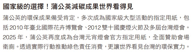 蒲公英不僅透過產品推動環保,也積極透過網路媒體、社群平台等多渠道深化綠色理念。2024年,蒲公英品牌在SEO優化上與「環保衛生紙」、「碳足跡標章」、「綠色商品」、「綠色採購」、「環保生活小習慣」等關鍵字深度綁定,搜尋排名穩居前列,成功擴大影響力。